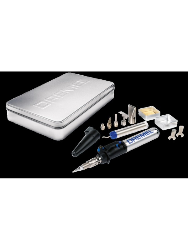 Паяльник Dremel VERSATIP 2000 F0132000JC - беспроводной бутановый ручной инструмент, который позволяет выполнять до 6 различных операций: запайки, расплавки, термоусадки, выжигания, горячей резки, а также удаления краски. Такой функционал обеспечивается благодаря разнообразию применяемых насадок. Паяльник удобен в обращении, комфортно располагается в ладони, легко зажигается благодаря пьезоэлементу.- Температура нагрева, град-550- Температура пламени, град-1200- Газ-бутан- Пьезоподжиг-да- Регулятор уровня пламени-да- Баллон в комплекте-нет- Предварительный нагрев газа-нет- Тип пламени-карандашное- Емкость бачка, л-0.017.
