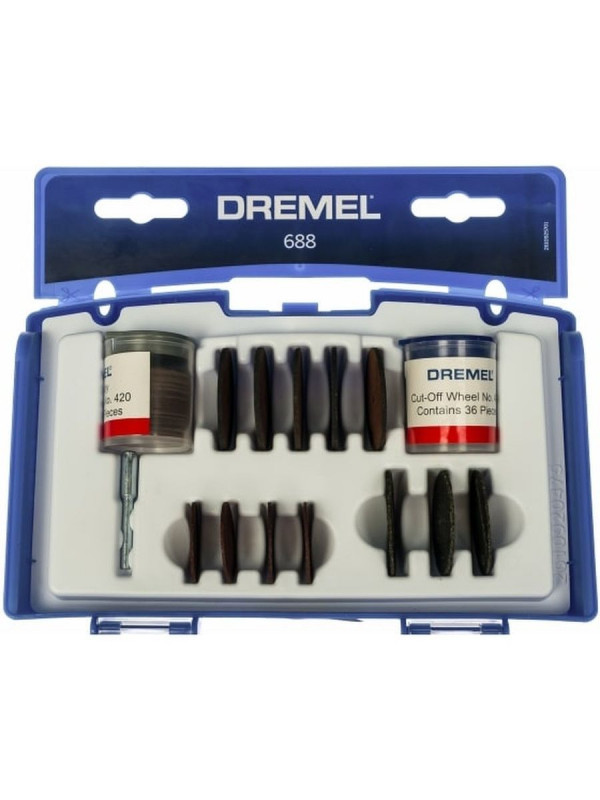 Набор оснастки для резки Dremel 26150688JA содержит насадки для резки металла, древесины или пластмассы с помощью гравера. Приспособления легко срезают болты, винты, а также прорезают канавки в различных деталях. Поставляется в чемоданчике, удобном для хранения и транспортировки. В комплект входит 69 предметов: - Отрезные круги 409 (36 шт.); - Отрезные круги 420 (24 шт.); - Отрезные круги 540 (5 шт.); - Отрезные круги 426 (3 шт.); - Держатель 402.