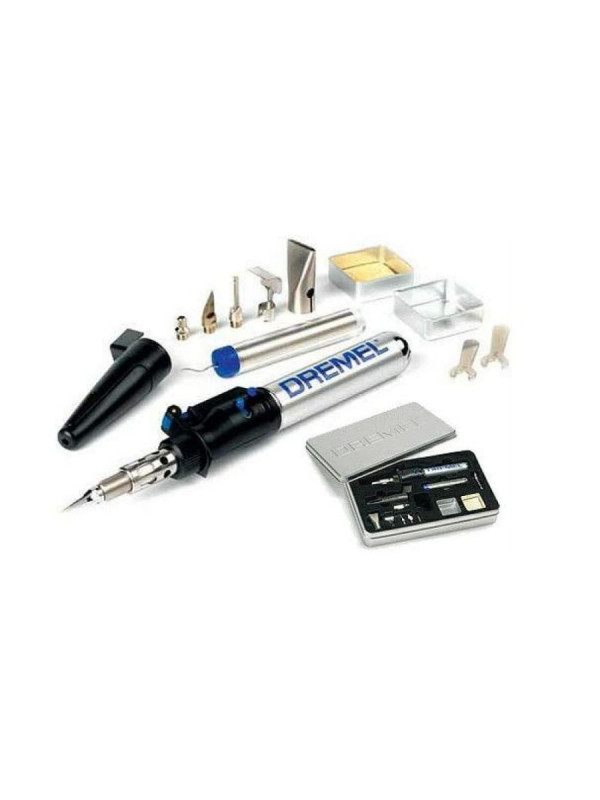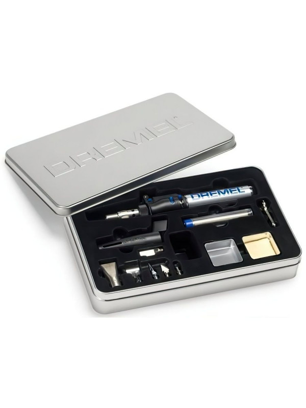 Беспроводной газовый паяльник Dremel Versatip Hobby, работающий на бутане. Отлично подойдет для горячего тиснения, отжига тонкого металла, выжигания по дереву, пайки схем, фиксации горячим способом, запаивания оловом, а также других задач. Профессионального класса. Выбор температурного режима позволяет настроить инструмент на выполнение каждой конкретной задачи. 6 сменных насадок дают возможность выполнять работы с повышенной точностью. Тонкий корпус газового паяльника Dremel Versatip Hobby позволяет удерживать его по принципу авторучки. Отсутствие кабеля питания делает инструмент более маневренным в работе. Быстрая заправка при помощи баллона. Время непрерывной работы составляет 90 минут. Предельно малый вес и компактные размеры обеспечивают максимальный комфорт и контроль над инструментом. Модель подойдет для ювелирного мастера, художника макетчика, ремонта техники, занятия хобби и прочего. Комплектация Dremel Versatip паяльная насадка режущий нож нож для горячей резки плоская широкая нагревательная насадка отражатель насадка для горячего воздуха паяльная насадка с голубым острием губка + коробочка гарантия инструкция металлический футляр Температура 1200 °C /680 °C /550 °C Воспламенения пьезо Емкость резервуара 17ml / 9g